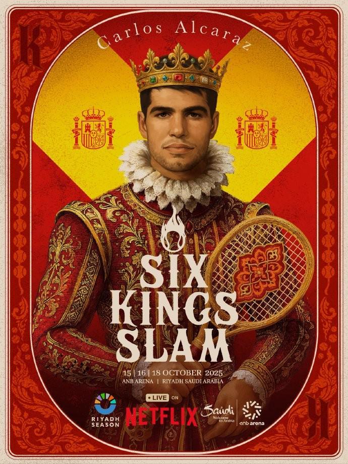 9月5日,2025年网球“六王大满贯”单人海报公布,该项赛事将于10月15日-18日在沙特进行。